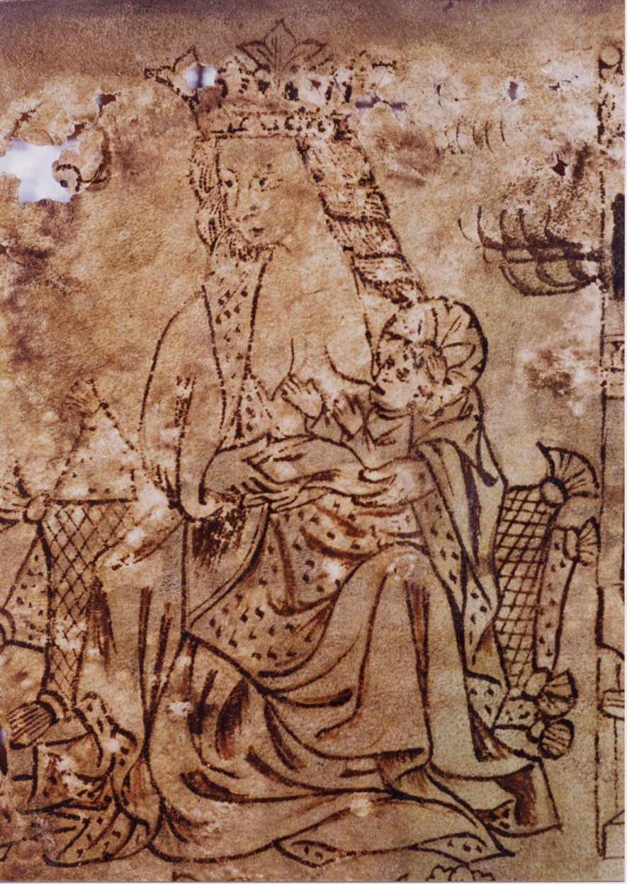 Die Heilige Maria hatte im Mittelalter viele Rollen, sie war Königin, Jungfrau, die trauernde Mutter und nicht zuletzt die Mutter, die den Sohn Gottes zur Welt gebracht und an ihrer Brust mit Muttermilch genährt hatte. Es sind Legenden davon überliefert, wie Marias Milch Sündern zur Seelenerrettung dient, was ihre Rolle als Mittlerin unterstreicht. Das Bild in der Teiknibók AM 673 III 4to zeigt sie in dieser Rolle. Die Krone ist ein Symbol ihres Status als Königin; sie ist die Königin der Welt.